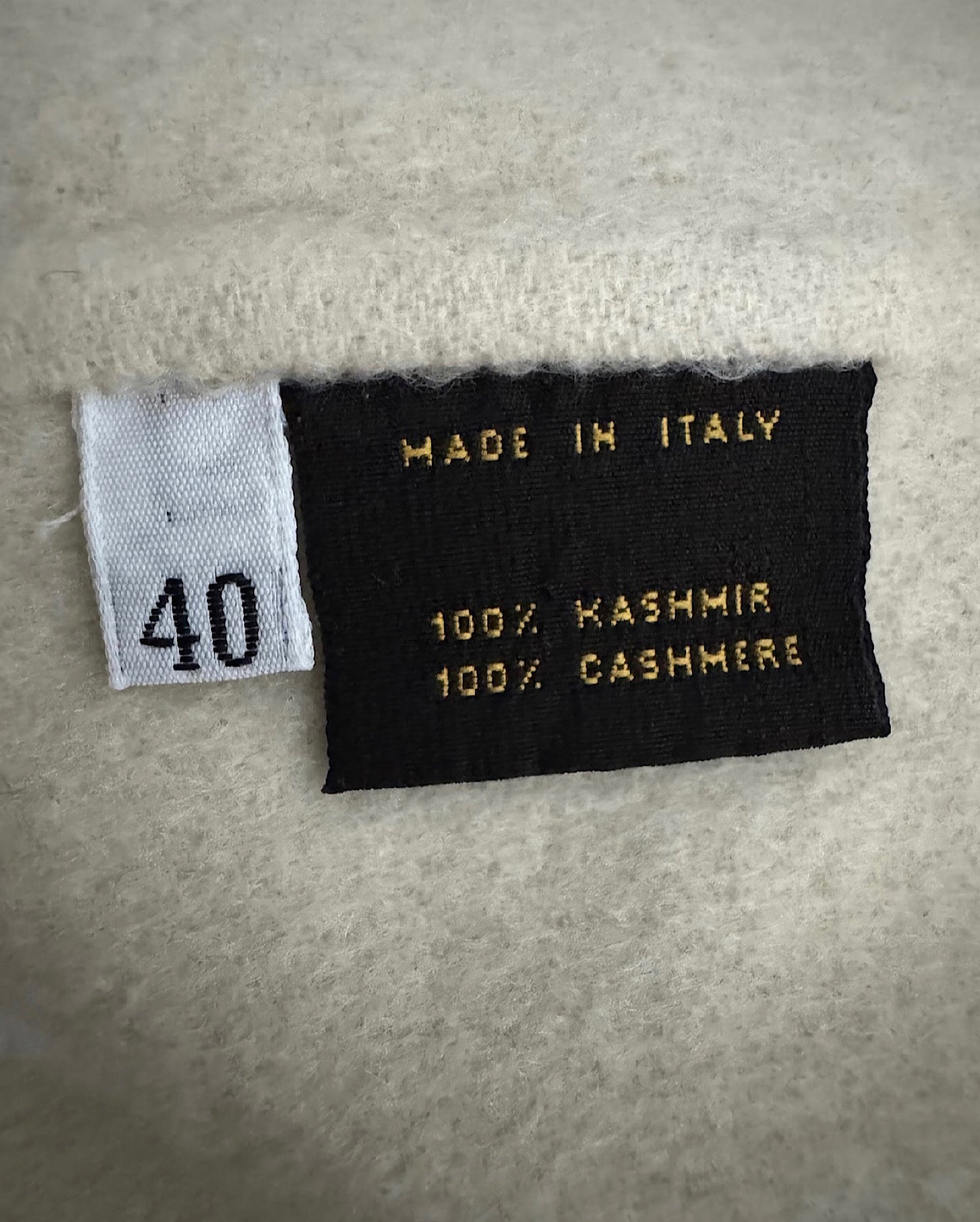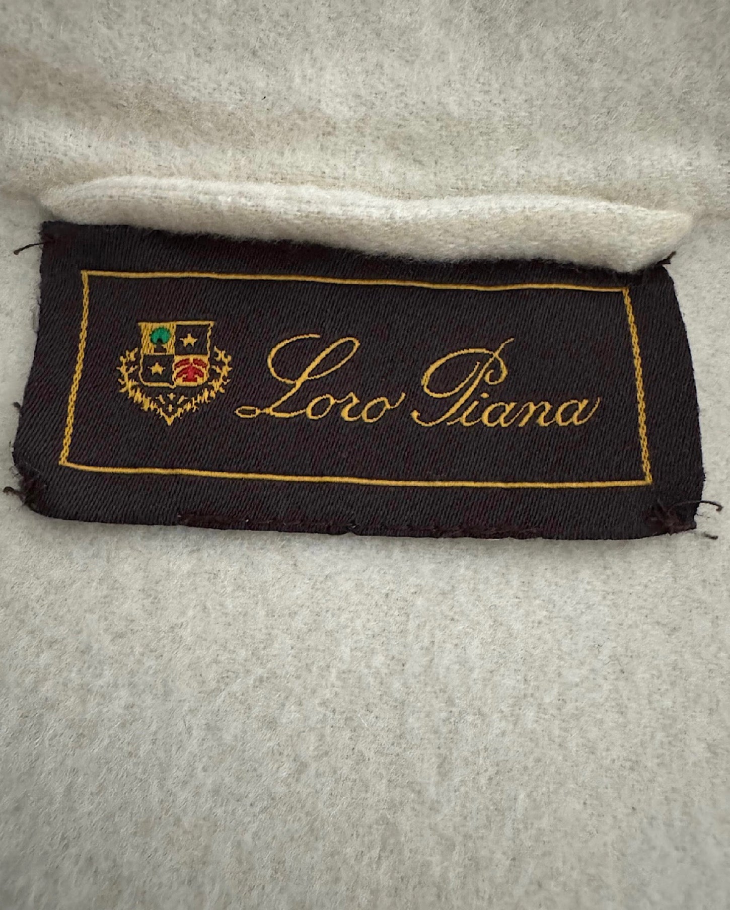 A classic cream cashmere double faced jacket by Loro Piana. Size 40 IT / 8 UK and a style steal at £345! The jacket has been worn but it is in good condition. It features front patch pockets, a collar, 3 cream buttons down the front and slits on the cuffs which can be folded back. A timeless classic and perfect to wear with denim, leather or tailored pieces.
