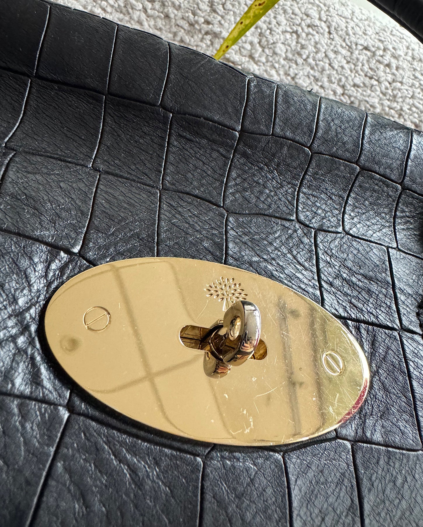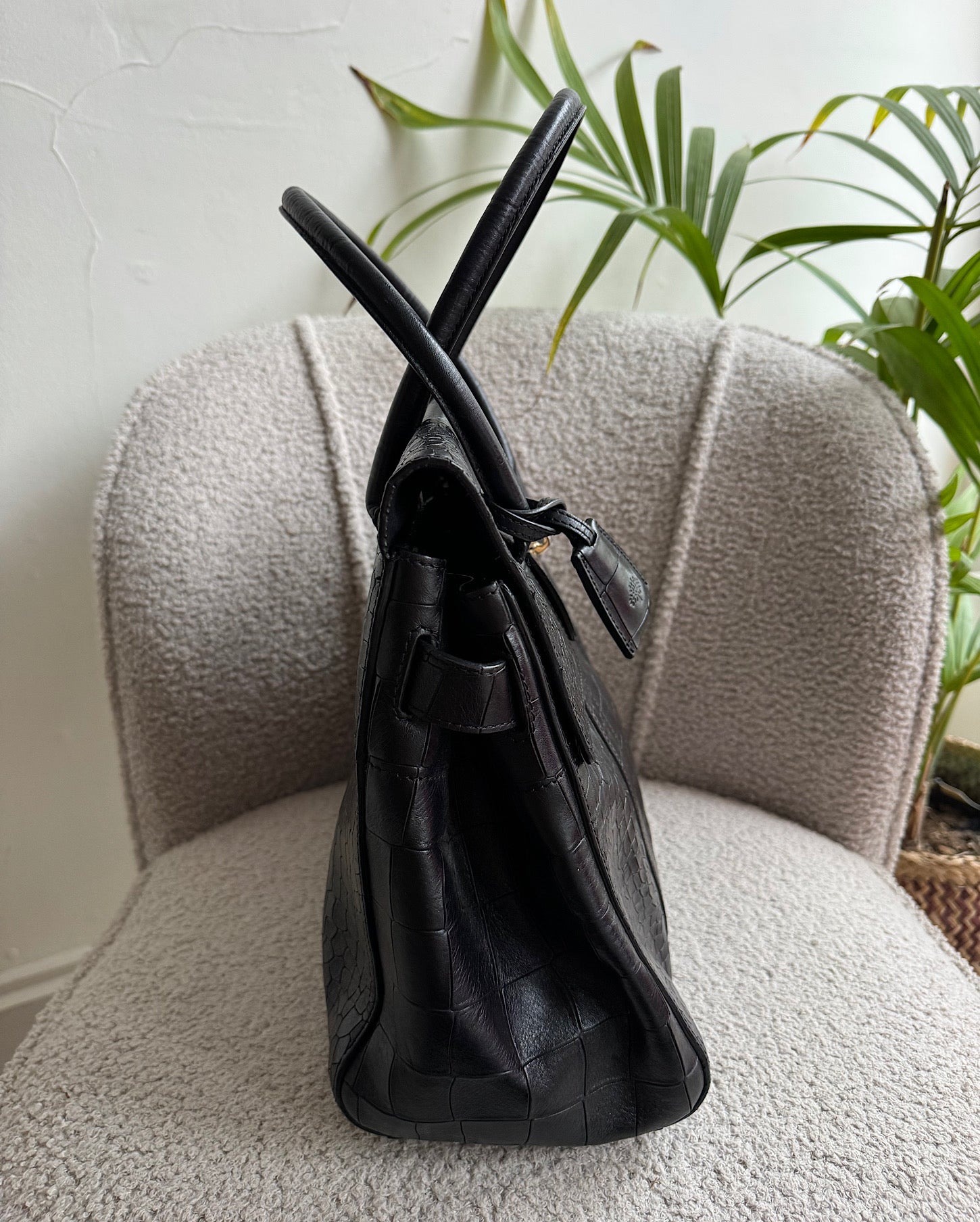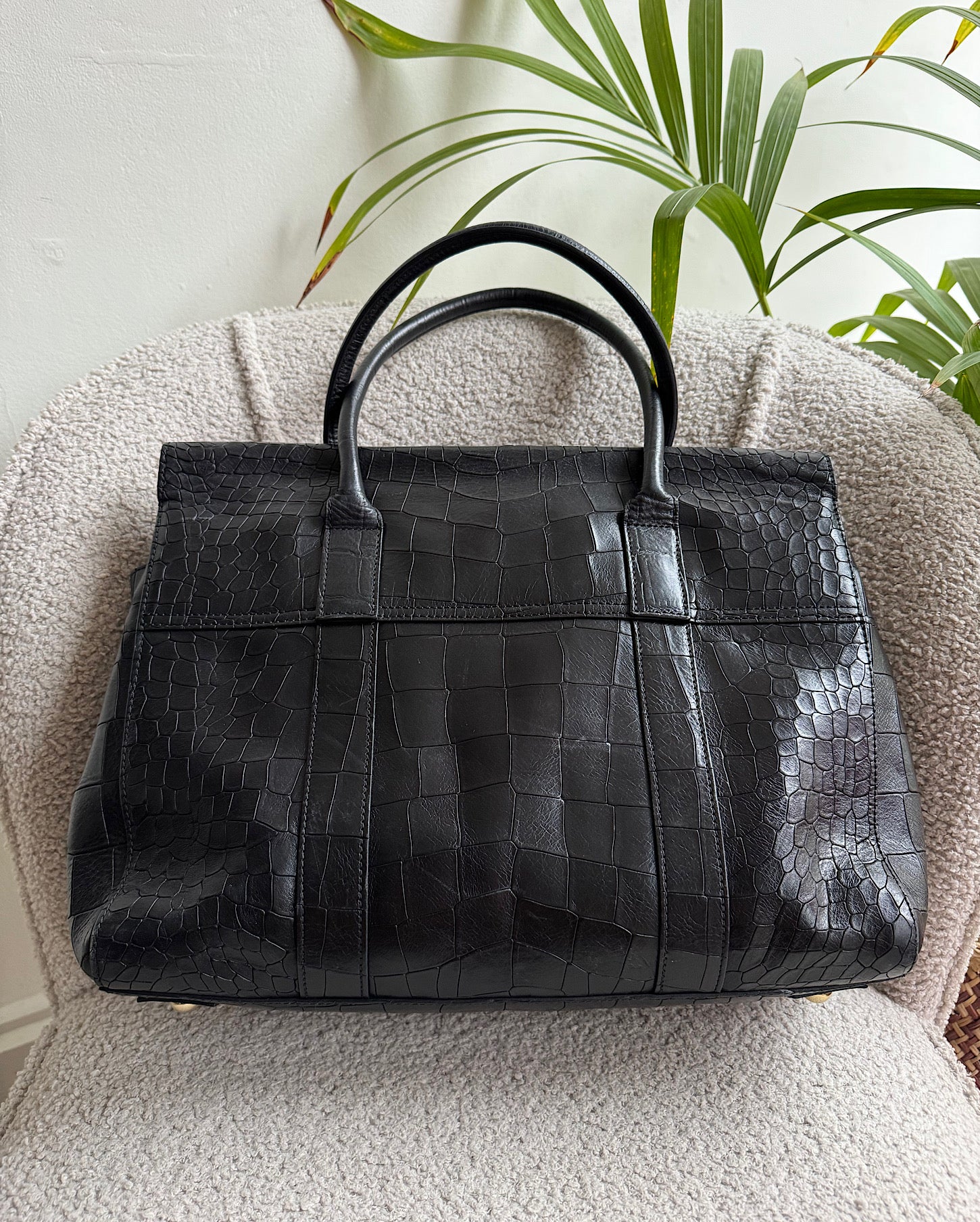 A gorgeous black crocodile effect leather Bayswater bag from Mulberry. The bag is in great condition and it is a style steal at £475! It comes with it’s dustbag and features gold hardware.