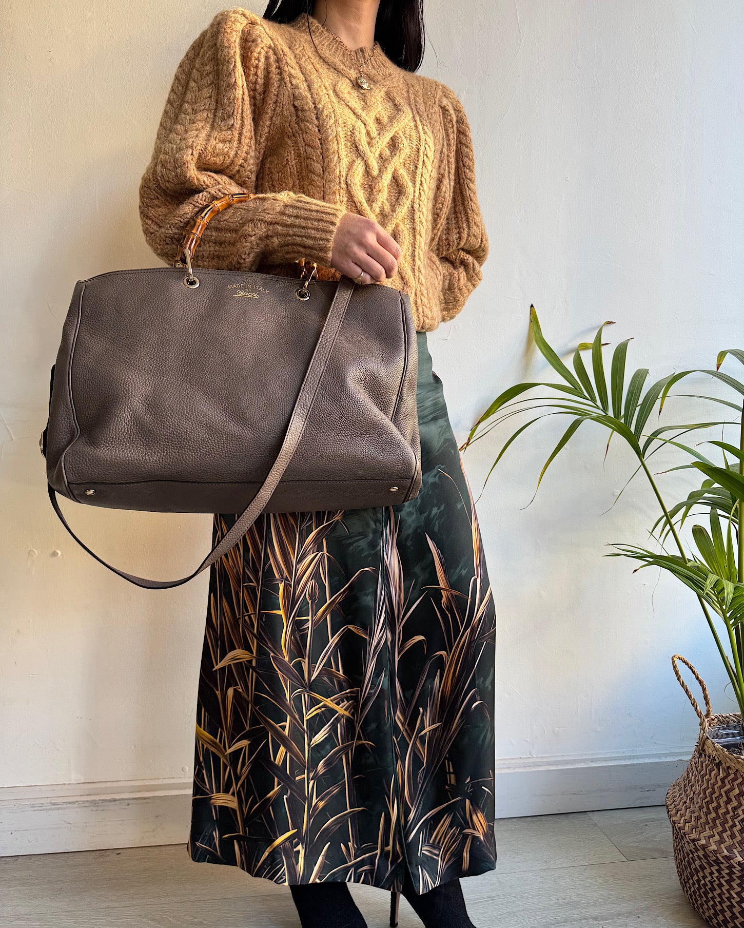 A gorgeous green silk skirt with bamboo print by F.R.S. (For Restless Sleepers) Size medium and a style steal at £175! The skirt features a button fastening on the waistband a central front split. Gorgeous worn with a white tank or silk camisole in the summer and a chunky knit in the winter.