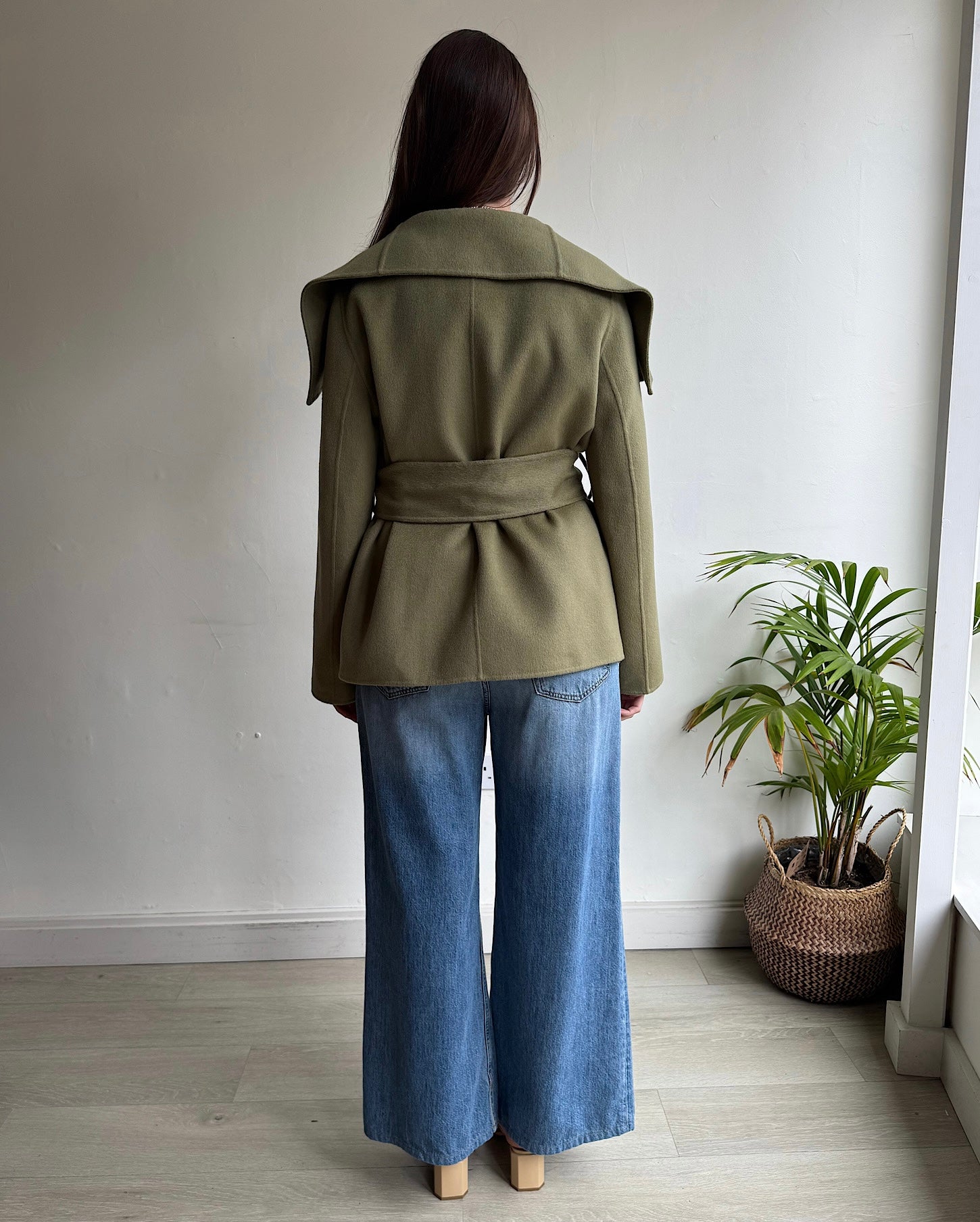 A beautiful green wool & cashmere-blend short coat with optional belt by Joseph. A generous size 36 FR / 8-10 UK, new with tags and a style steal at £245!