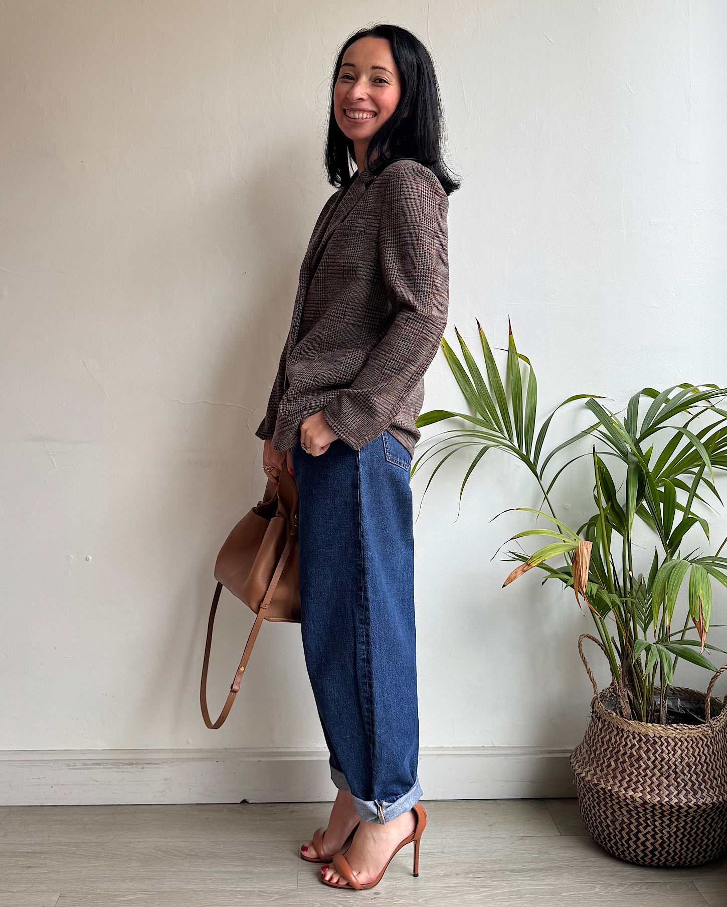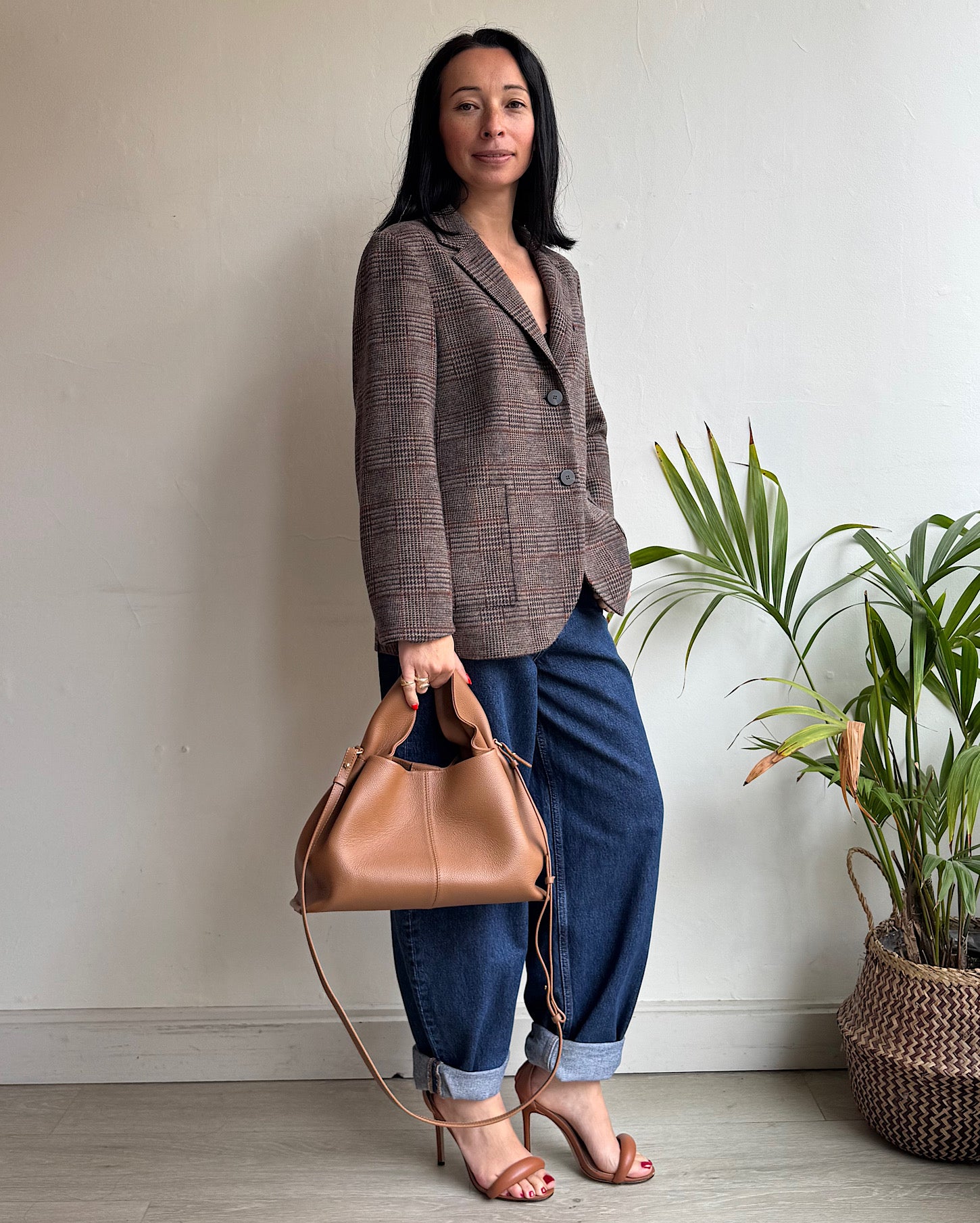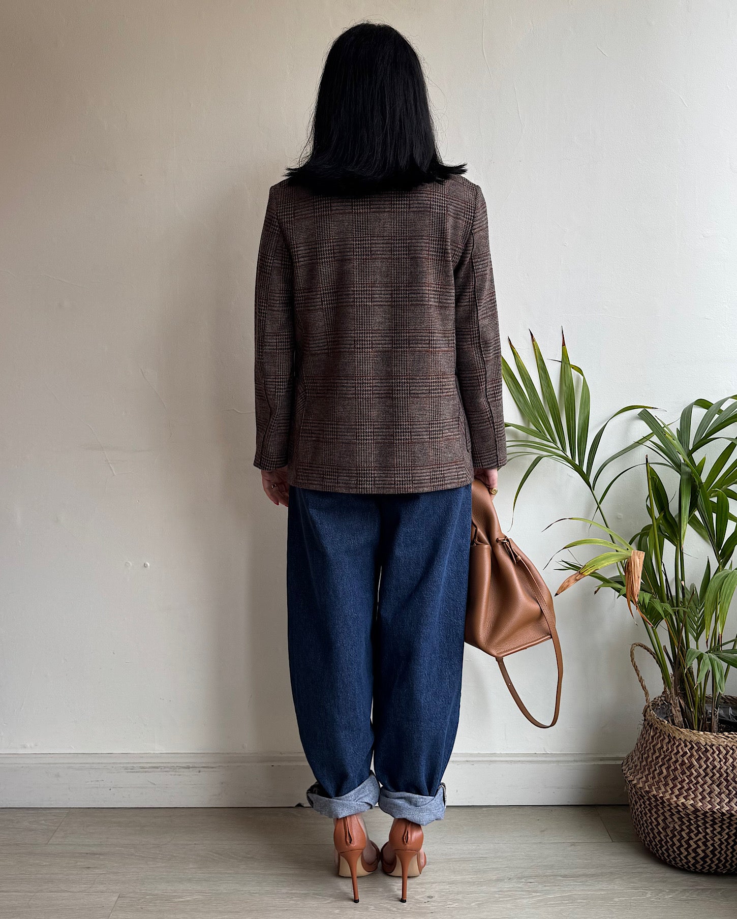 A beautiful Harris Wharf houndstooth check jacket by Harris Wharf. The jacket is a size 10 UK, like new and a style steal at £265! It’s is single breasted with two buttons and unlined. It looks great with denim, cord, leather and with more tailored pieces. The fabric is crafted with Lori Piano fabric and the result is a stunning jacket.