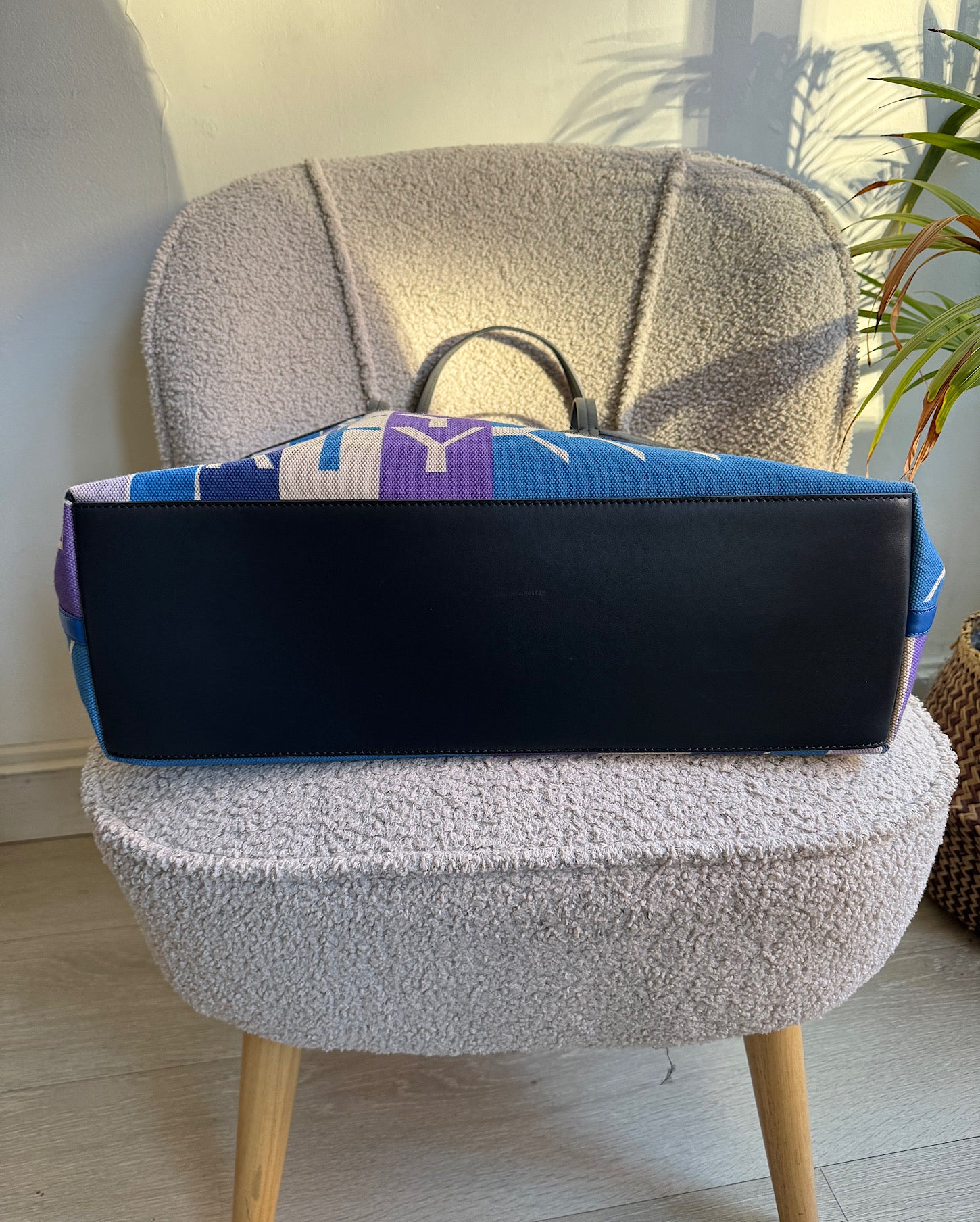 A stylish canvas tote from Liberty. New without tags and a style steal at £145! Features a navy leather base and handles. Also comes with a detachable canvas purse with leather trim and dust bag. There are a couple of light scratches on the leather base.