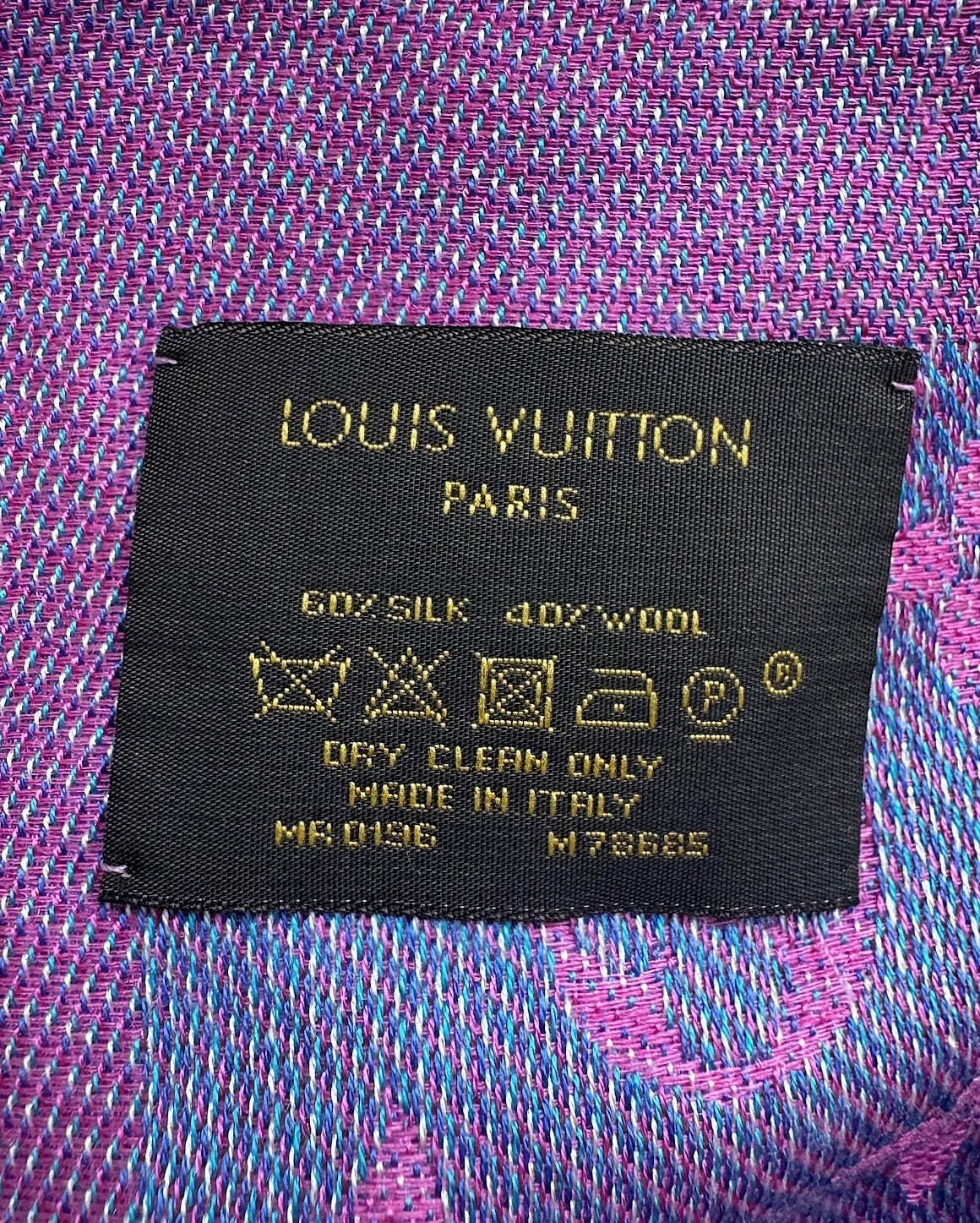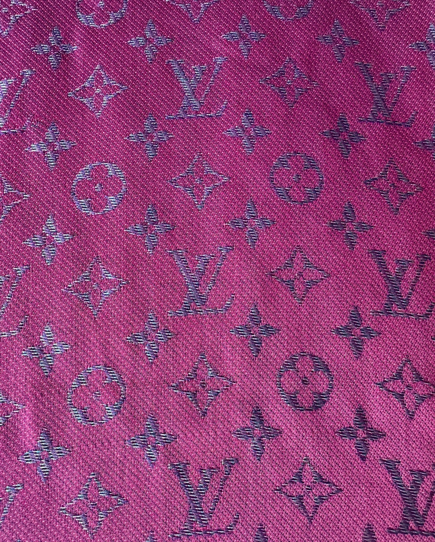 A beautiful pink and blue monogrammed silk and wool scarf by Louis Vuitton. The scarf is in great condition apart from several pulls and a style steal at £175! The scarf comes unboxed.