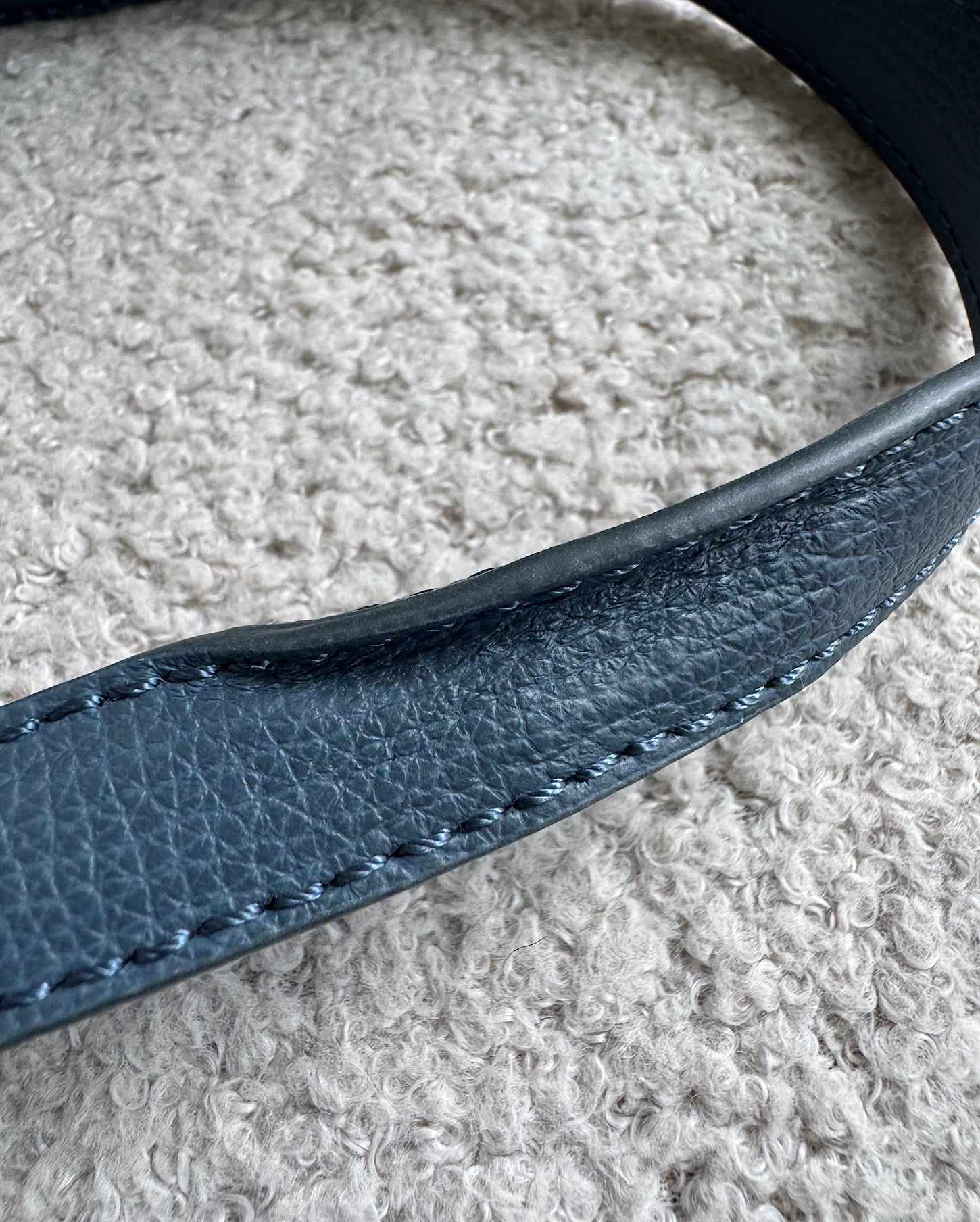 A stylish grained leather Numero Dix bag in Textured Midnight from Poléne. The bag has been lightly used and it is a style steal at £245! Currently retailing at £450! It comes with its dustbag and a shorter strap that can be used as a shoulder strap. The inside of the bag looks like new and there is a little fold on a corner on the long strap.