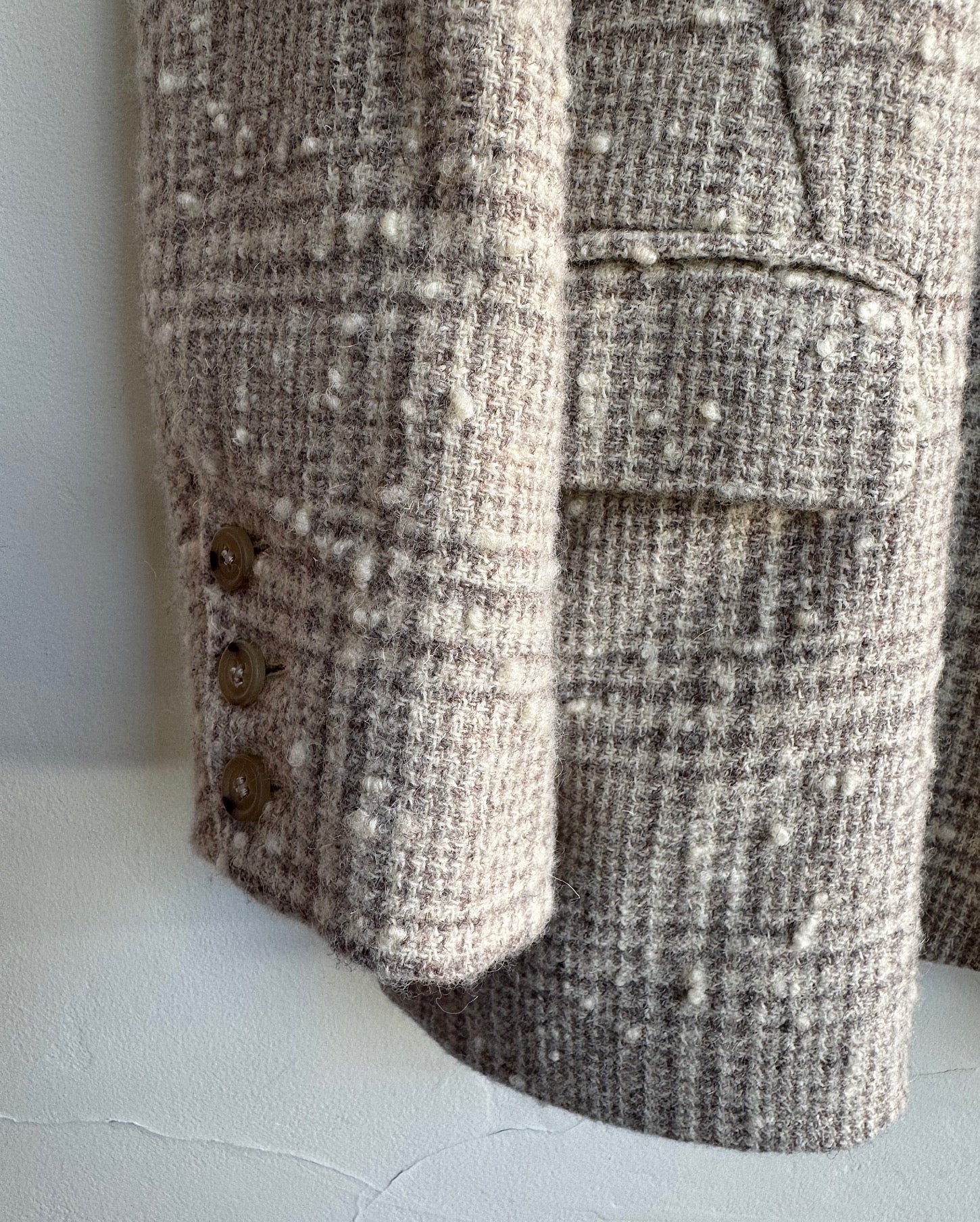 A gorgeous cream and grey tweed jacket from Isabel Marant. Size 44 FR / 16 UK and a style steal at £165! Features a single button and looks great with denim, linen and leather. The tweed fabric has a lovely bobbily, textured effect.